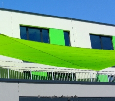 System (2M/2W) mit 2 Pylonen, davon eine an der Wand befestigt & 1 Masten in maritimer Ausführung. Aufrolldiagonale an Wandbefestigung/ 1 Höheneinstellung/ Wind- & Sonnenwächter/ Fernbedienung. Ausgestattet mit dem selbstreinigendem Nano Tuch - regendicht, lichtdurchlässig und mit höchstem UV-Schutz, sternförmig geschnitten, mit 2 Schotblechen.