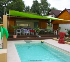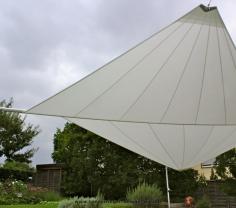 System (4M) mit 2 Pylone & 2 Masten in maritimer Ausführung/ 1 Höheneinstellung Kurbelsystem/ Wind- & Sonnenwächter/ Fernbedienung. Ausgestattet mit dem selbstreinigendem Nano Tuch - regendicht, lichtdurchlässig und mit höchstem UV-Schutz, sternförmig geschnitten, mit 2 Schotblechen.